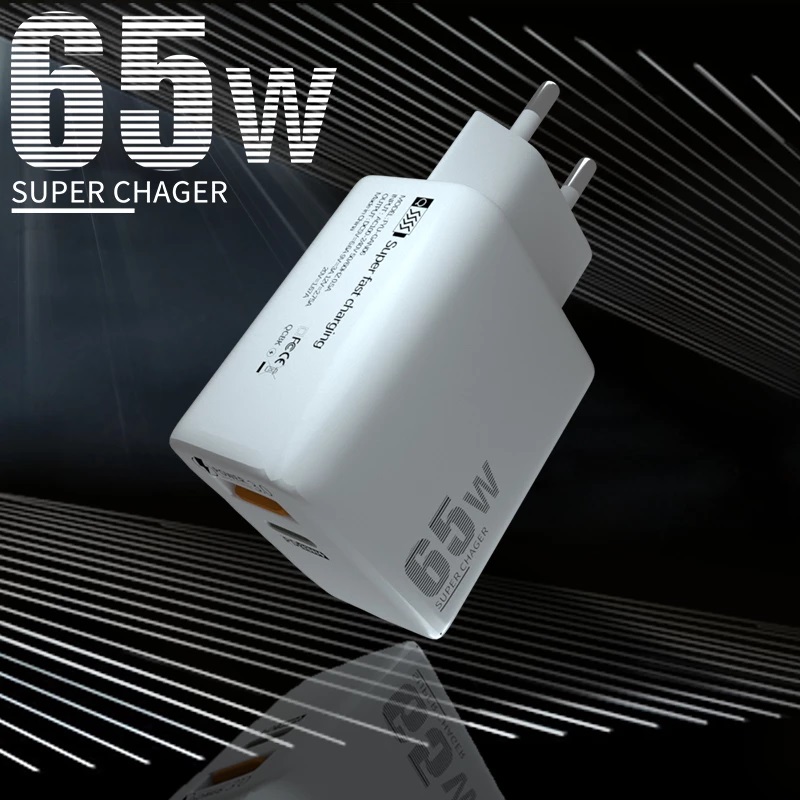 Αντάπτορας Τοίχου USB & USB Type-C 65W 5V Super Fast Charge 3.0 BK385-GaN Black