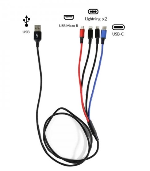 USB 4 in 1 Cable 2 Lightning / 1 Micro Usb / 1 Type C 125cm 2.8A